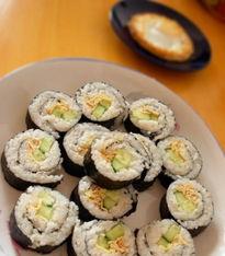 3. 卷寿司:将米饭和海鲜放在紫菜上,卷起时要用力均匀,以免寿司松散。