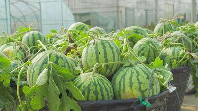 “是啊,这瓜的颜色看起来就很好吃!”另一位大爷也跟着附和。